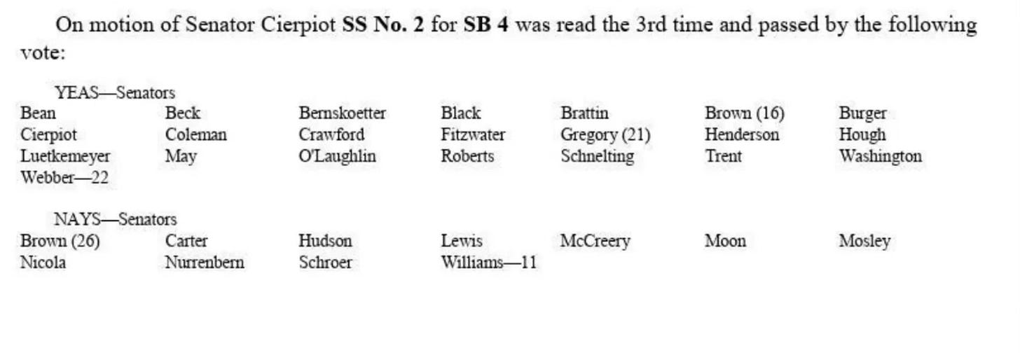 MISSOURI SENATE VOTES: