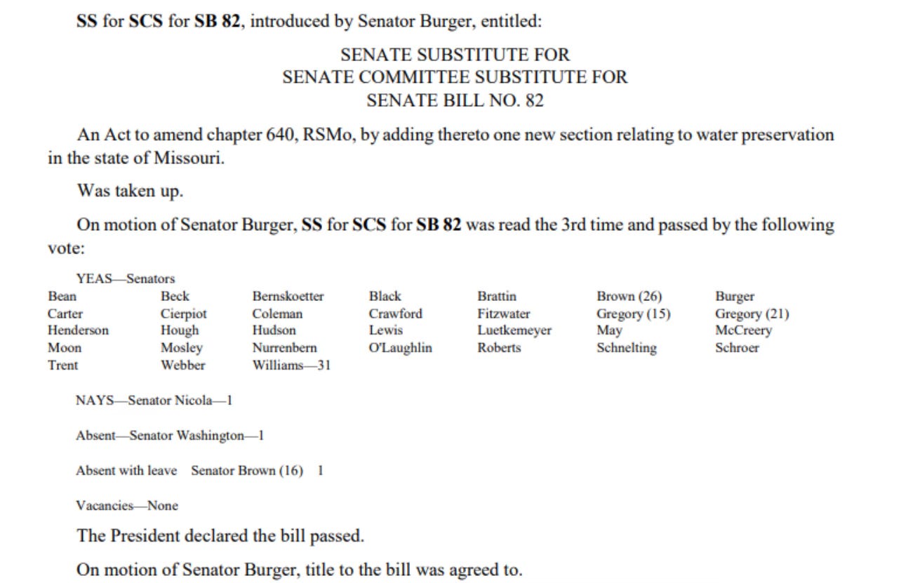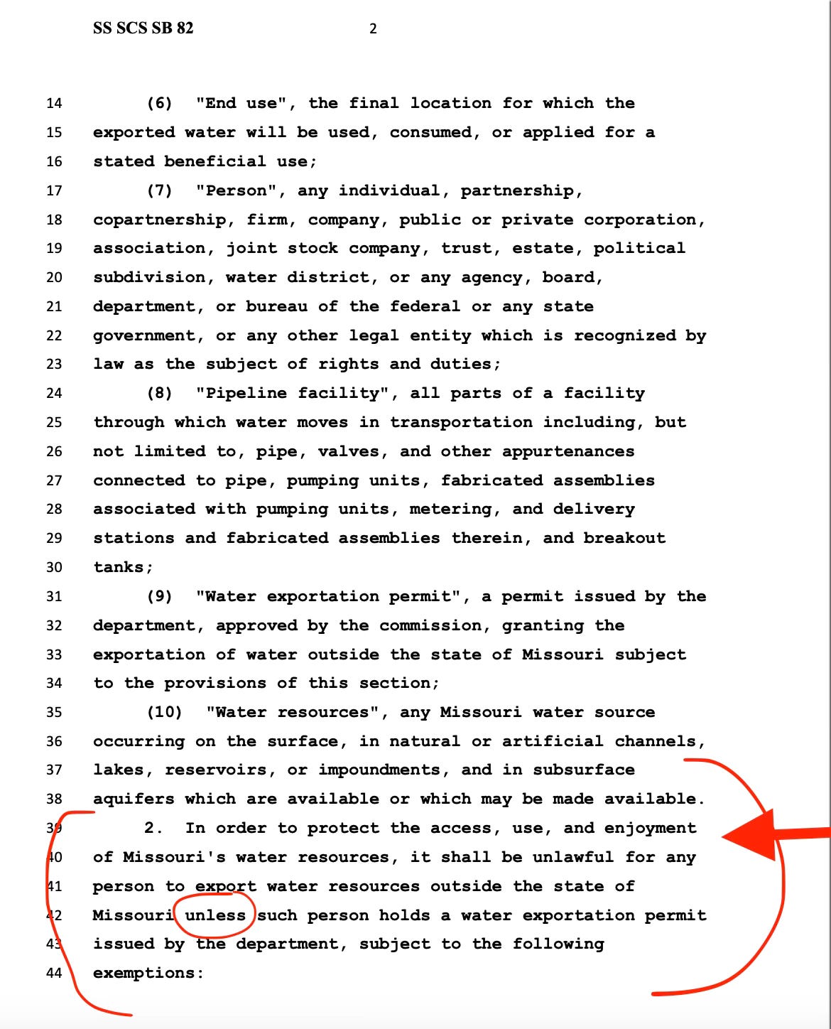 WHAT ABOUT THOSE WATER BILLS WE TALKED ABOUT THAT NOWS ALLOWS PRIVATE, FOR PROFIT, WATER CORPORATIONS TO EXPORT MISSOURI’S WATER?