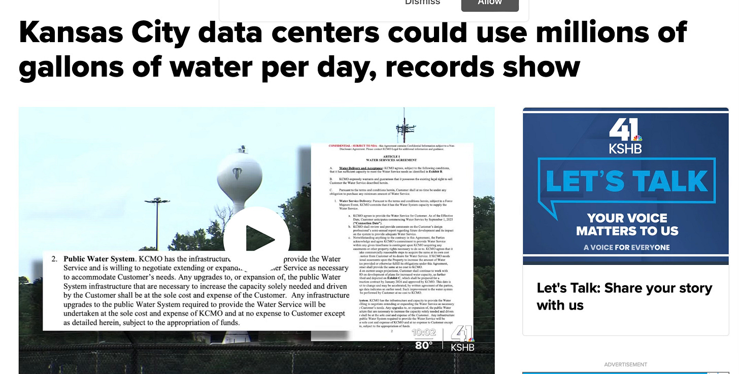 In Missouri SB 4 passed leaving Missouri to pay for these big DATA CENTERS and the natural resources that are needed to fuel them. Think energy and natural resources like water and gas. ALL considered “PUBLIC UTILITIES”.